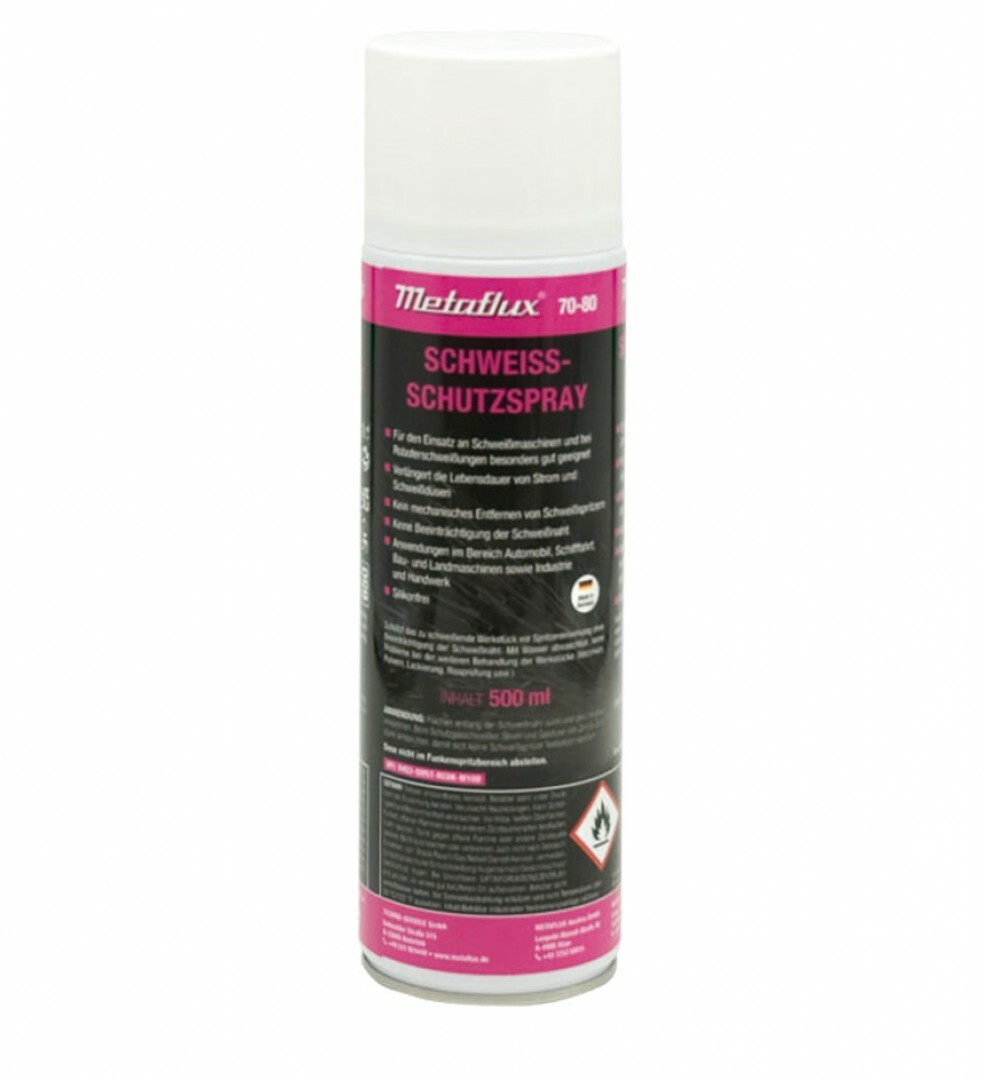 Separačný sprej určený na zabránenie prichytenia rozstreku pri zváraní na povrchu materiálu a zváracích dýzach. Vytvára ochranný film, ktorý umožňuje jednoduché odstránenie nečistôt bez mechanického čistenia. Neovplyvňuje kvalitu zvaru a je vhodný pre následné technologické operácie (pozinkovanie, práškové lakovanie, lakovanie, skúška trhlín a iné).
