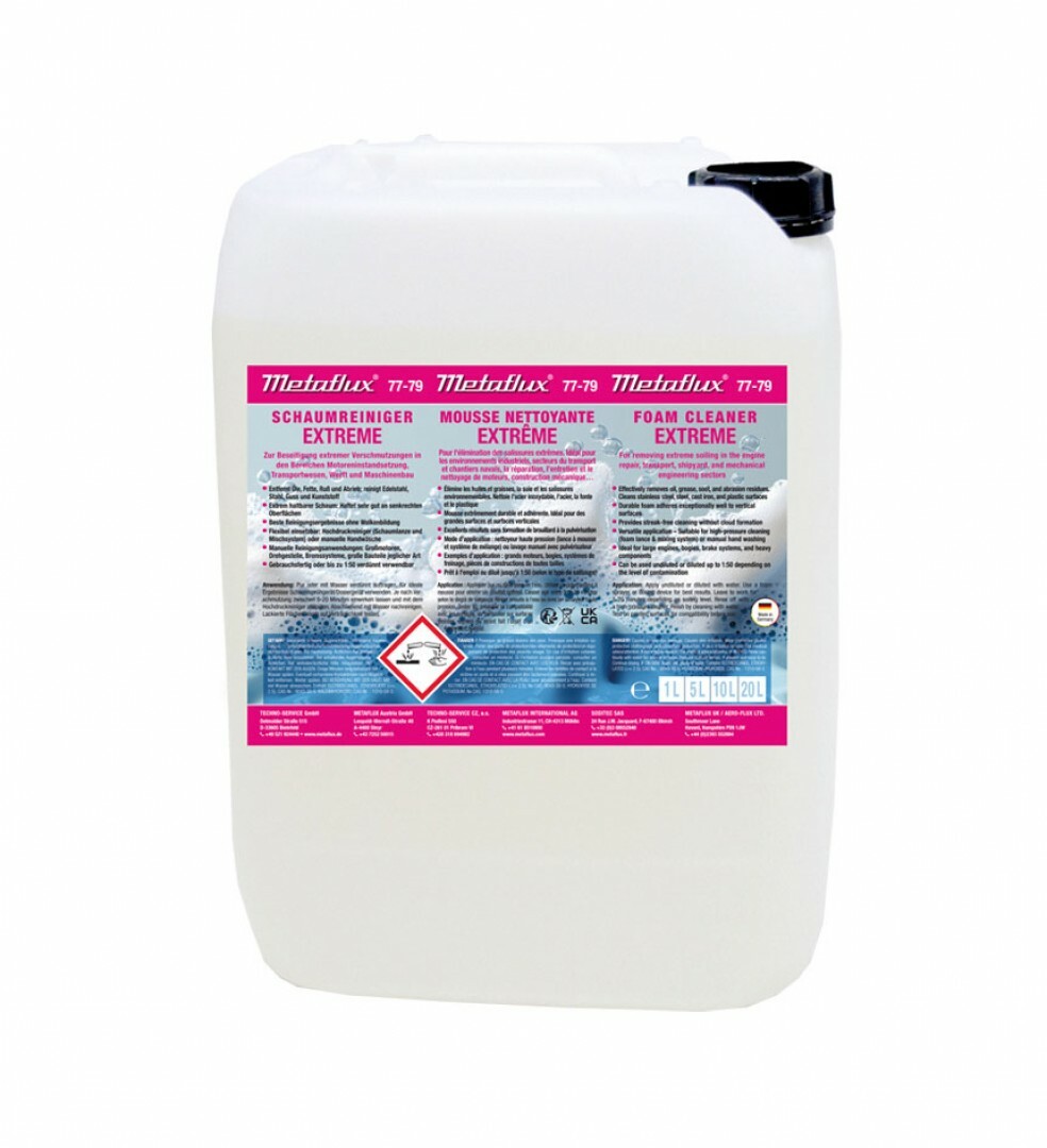 Silný penový čistič určený na odstraňovanie extrémneho znečistenia v oblastiach opravy motorov, dopravy, lodného priemyslu a strojárstva. Účinne odstraňuje oleje, tuky, sadze a otery z kovových a plastových povrchov.